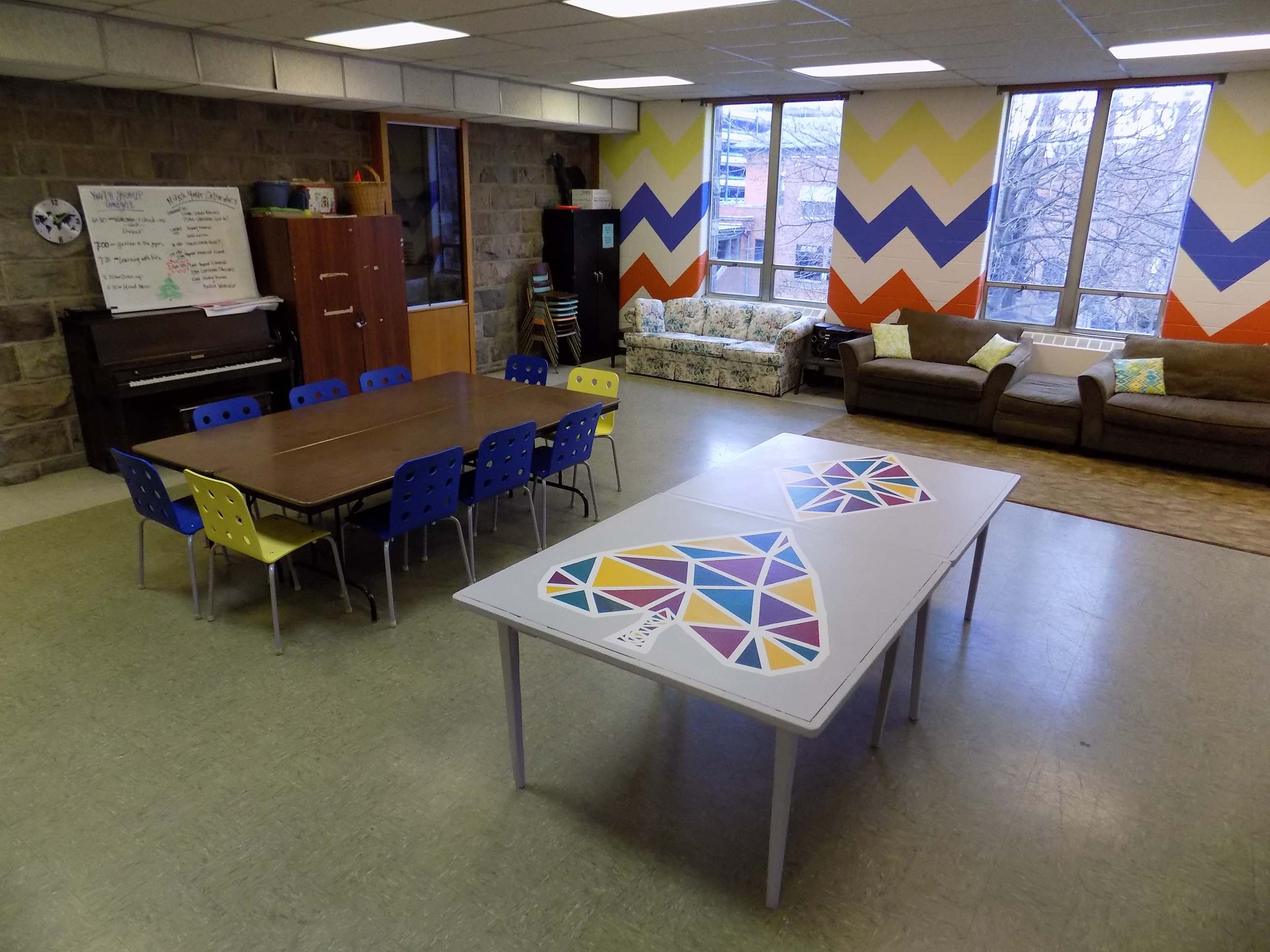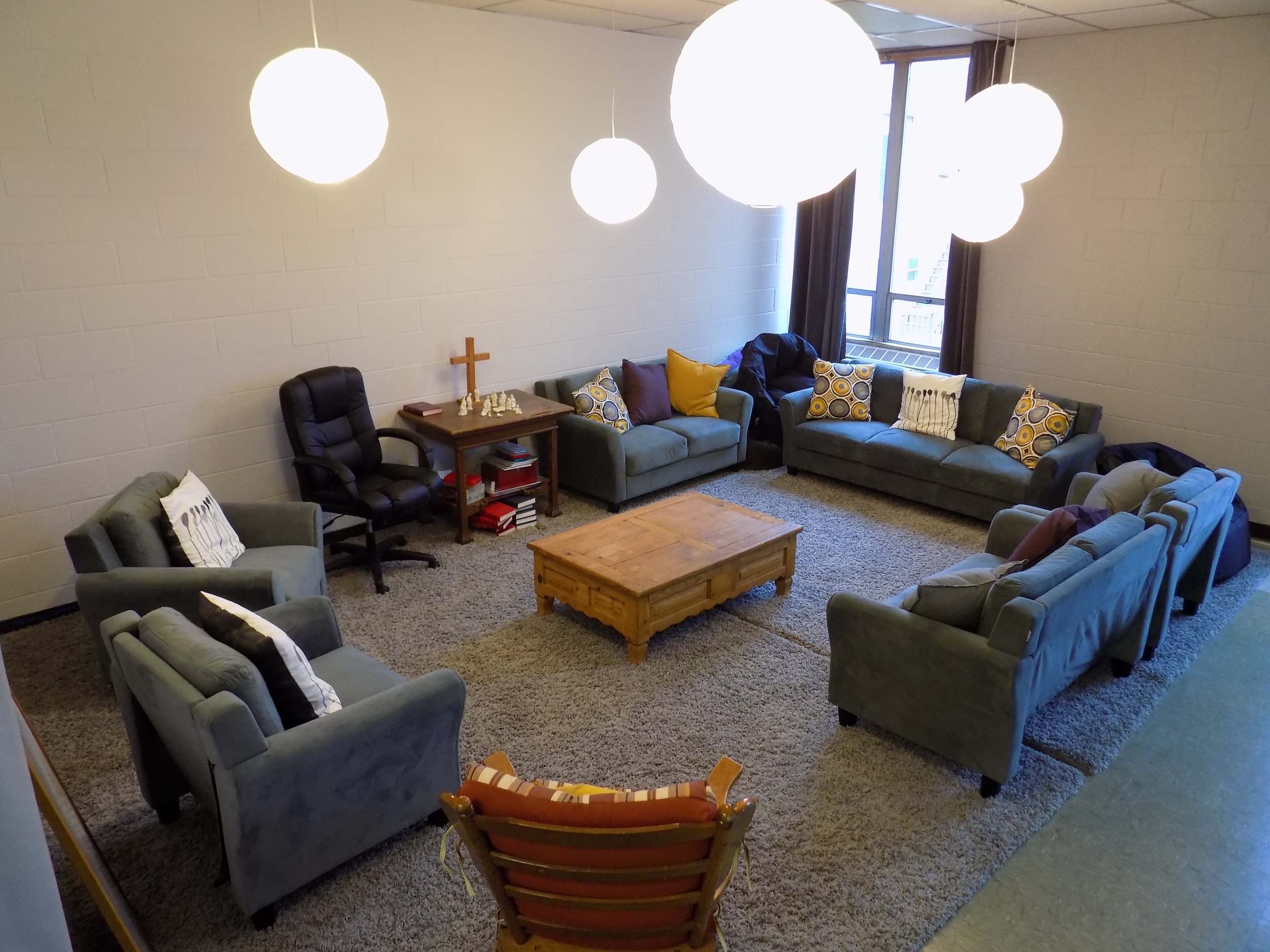 Seating for 30 - 40, small kitchenette, tables and chairs or comfortable lounge furniture.